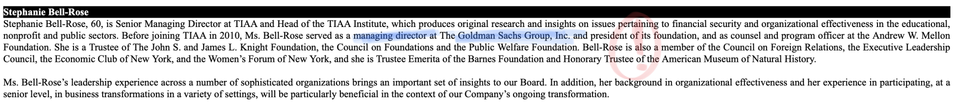 Former Managing Director of Goldman Sachs, Stephanie Bell-Rose is added to the board.