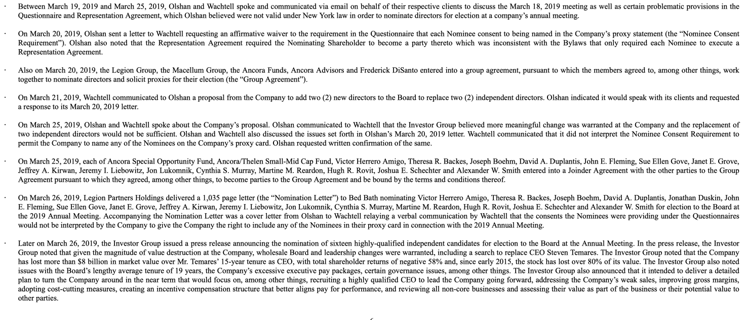 The company wasn't too keen on meeting their demands. In fact, Bed Bath goes so far as to say that Legion & pals didn't have any specific recommendations.