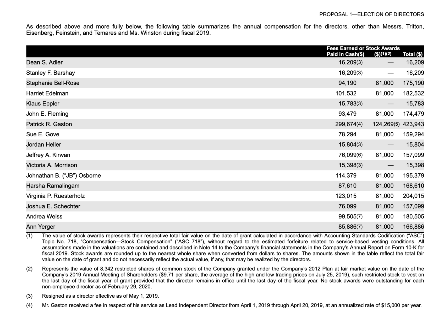 Unlike previous CEOs, Tritton decided to take his pay in 88% stock and stock options, which is a significant departure from past CEOs compensation structures. On the surface it looks like he's aligning with shareholders because his capital is "at risk" due to the stock price.
