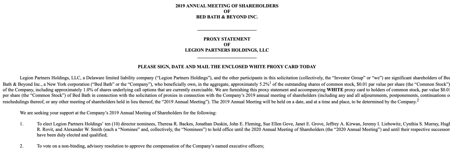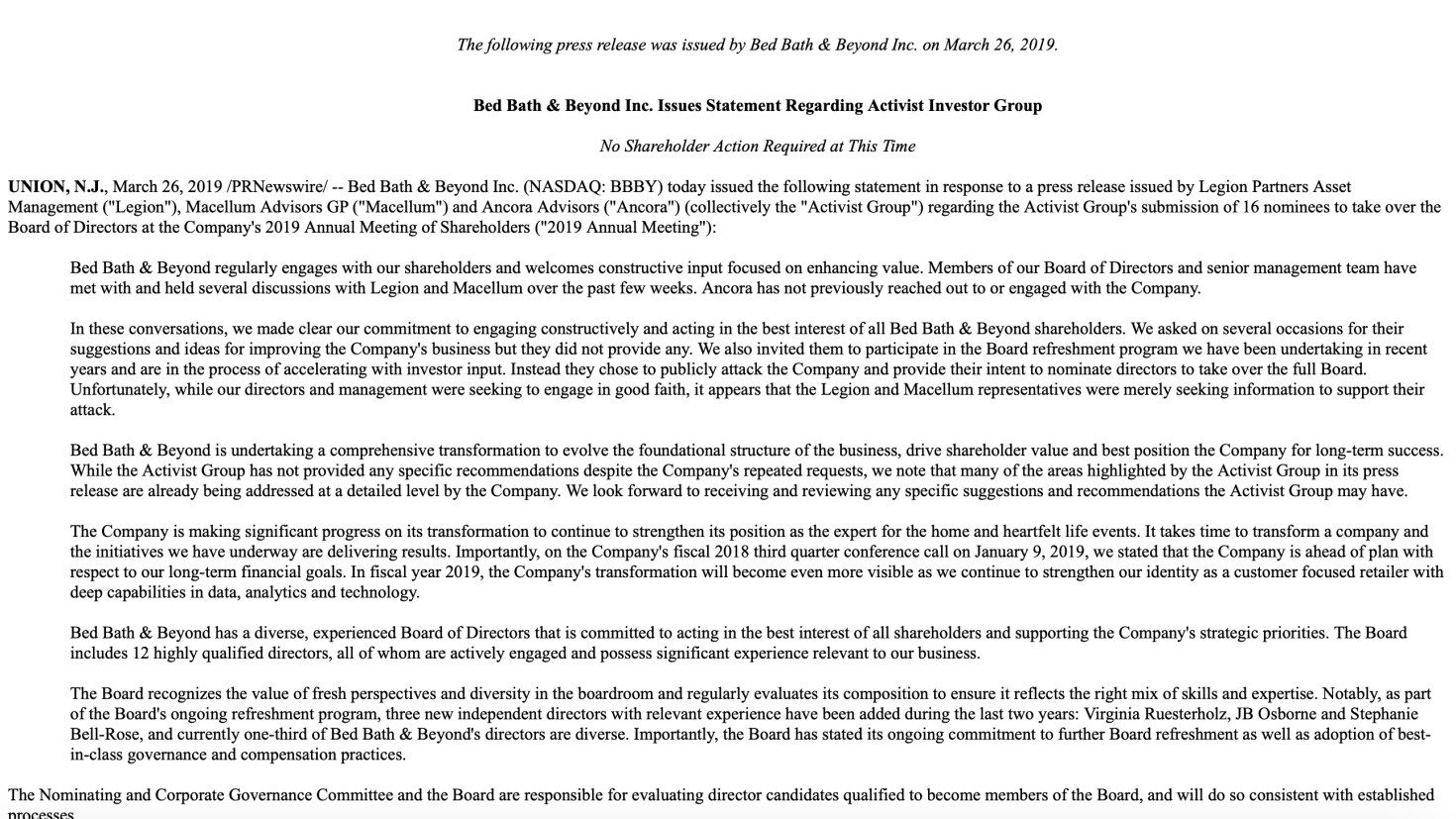 The company wasn't too keen on meeting their demands. In fact, Bed Bath goes so far as to say that Legion & pals didn't have any specific recommendations.