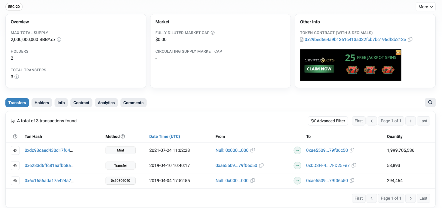 A few days later, almost 2 billion more BBBYcx tokens are minted to the chain.