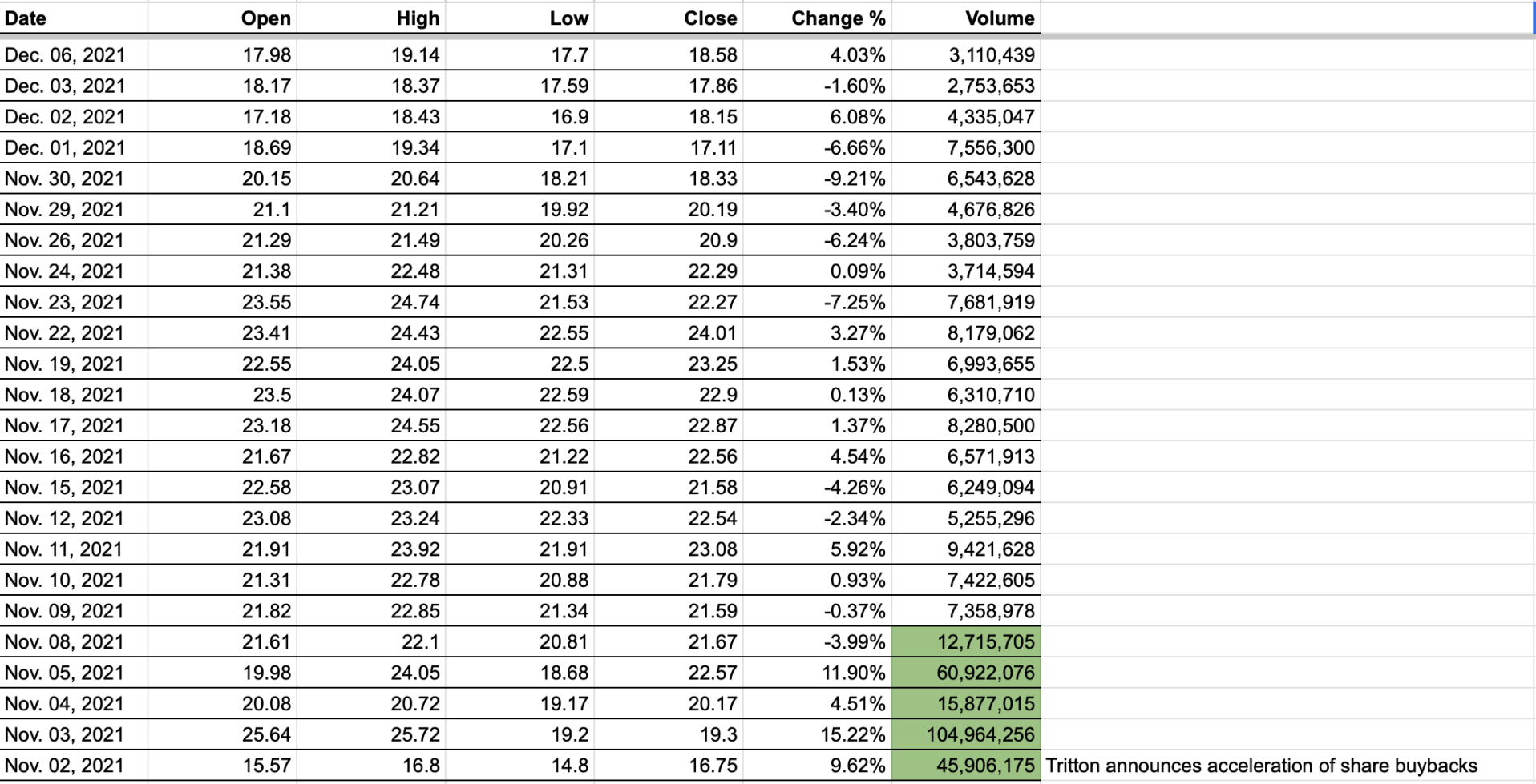 And wouldn't you know it? JP Morgan is also the bank that provides the shares for the company's share buyback program. A program that Mark Tritton would accelerate on Nov 4, '21.