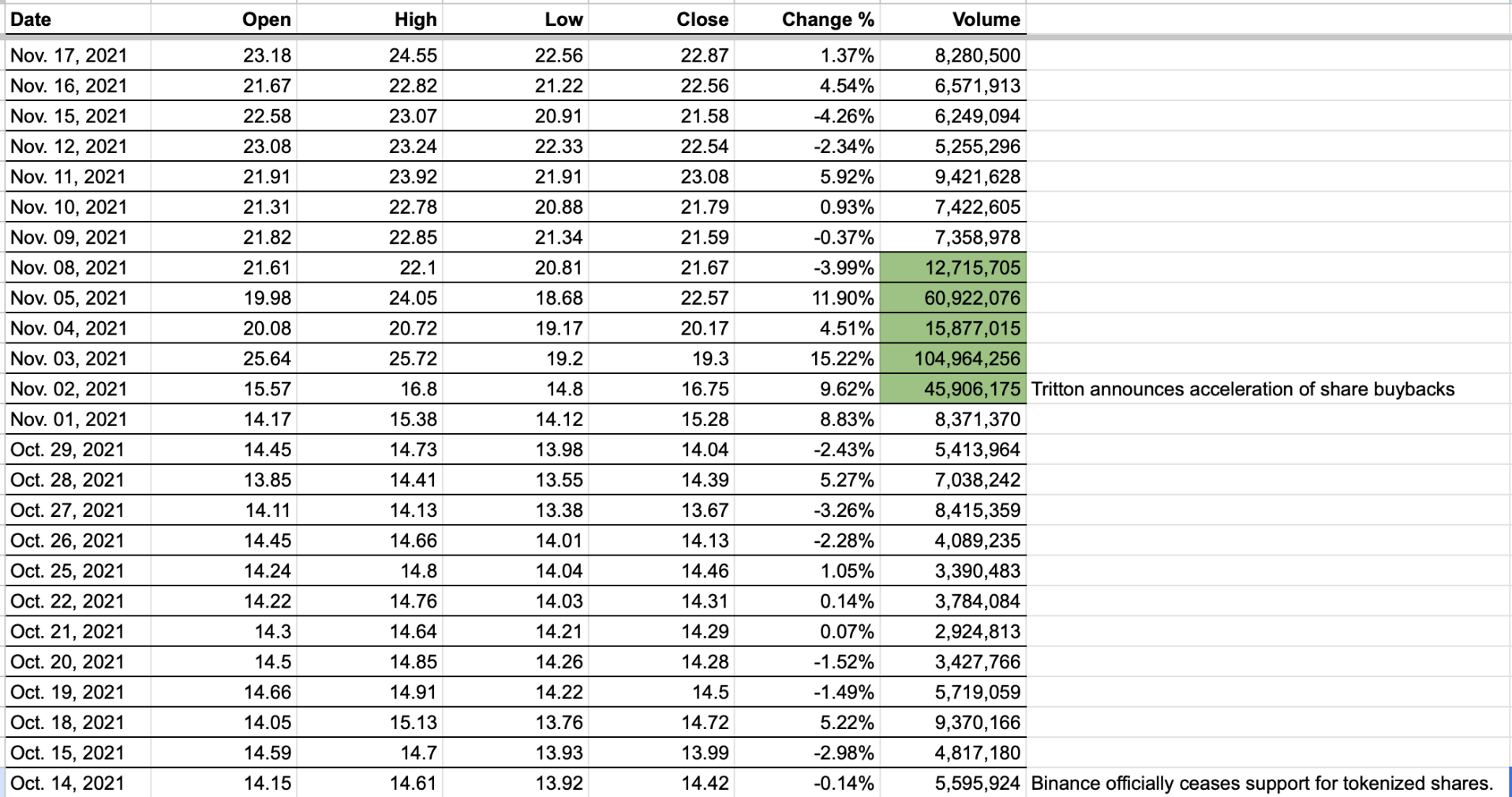 Binance's tokenized share program was abandoned after about a month, citing regulatory pressure. Pressure they knew was there going into it. However, the fact that it existed at all allowed them mint billions of tokenized shares for this stock and many others.
