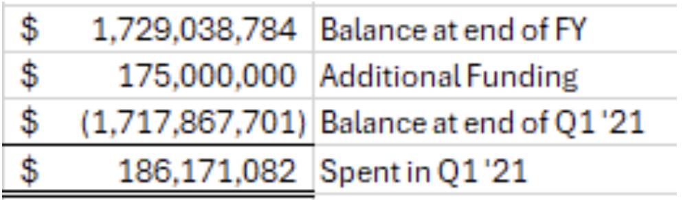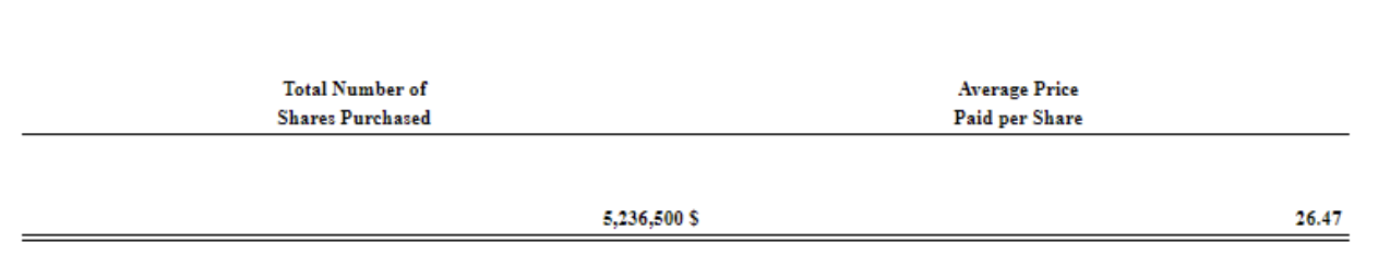 Interestingly, we know that 5,236,500 x $26.47 = $138,610,155 that was spent on share repurchases for the quarter that excluded the ASR shares, and we know that $186,171,082 was spent on all share repurchases for Q1 2021, so $186,171,082 - $138,610,155 = $47,560,927 was spent on the ASR.